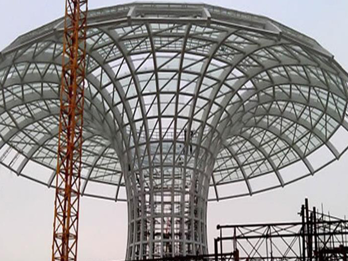 二、球形网架结构因其结构新颖,受力合理,自重轻、用钢量低等优点。如大型体育场馆球形敦化螺栓球网架、公共场馆球形网架、电厂敦化螺栓球网架、水泥工业球形网架、仓储物流球形网架、敦化干煤棚工业球形网架、敦化收费站敦化加油站球形网架、展览中心、影剧院、商场、航站楼、候车厅、工厂敦化车间、仓库、电视塔等球形螺栓球节点网架。国内球形网架结构主要分为:敦化焊接球节点网架及螺栓球节点网架两种。螺栓球节点网架其构件工厂内加工量较大,现场安装便捷,适用于现场工期紧,敦化施工条件、用电量受制约,网架形状复杂、敦化杆件定位困难的异形结构。螺栓球节点球形网架系统基本由敦化杆件、螺栓球、支撑支座等组成。按照节点形式可分为交叉敦化桁架体系、四角锥体系、三角锥体系等。支撑方式多为固定支座支撑。对于大面积、大跨度及有特殊受力或伸缩要求的网架结构可采用橡胶支座、滑移支座、球铰支座等支撑形式,以满足结构自身的受力稳定、均衡,便于内力释放等设计要求。